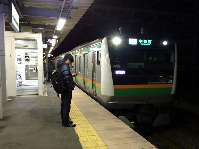 というわけで、平成28年1月8日の金曜日。仕事を終え一度帰宅。その後自宅最寄り駅からJR宇都宮線上り普通列車宇都宮行きに乗車し、今回の旅がスタート。この時間からだとちょっと勿体ないのですが、青春18きっぷの1日分をここで使用します。(ちなみに、運賃的には勿体なくないのですがね。)それで宇都宮からは20時24分発の上野東京ライン沼津行き普通列車に乗り換え。奮発してグリーン車に乗ったのですが、その目的の一つが、車内販売があることで、ビールやらチューハイを購入して飲酒。この日は最終的に東京から夜行バスに乗るのですが、その前にちょいとばかり酔っ払っておけば、乗車してすぐに眠れるのではないかと。それで飲みながら、持参のタブレットを広げて明日の競馬の予想をしていれば、降りる予定の品川には、あっという間に到着という感じで。で、品川で降りたのは、高速バスの乗り場があるからという訳ではなく、最近ハマっている某店で遅い夕食を摂ろうという訳なのですが、午後10時半過ぎという時間にもかかわらず行列が出来てて驚いたというか。そんな中、ビールと激辛おつまみ、コッテリとしたつけ麺でお腹を満たしたのですが、この時は美味しい美味しいといただいたこれらが、翌日、深刻な事態を引き起こすことになるとは…。