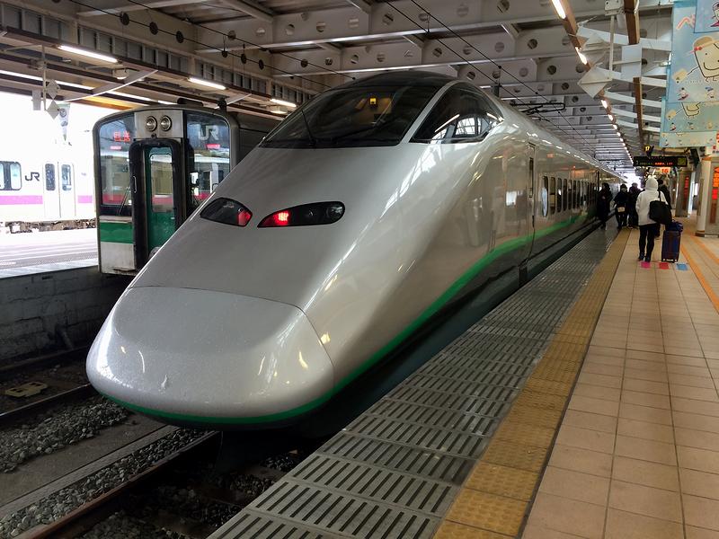 【新庄駅で発車を待つ山形新幹線つばさ144号】
