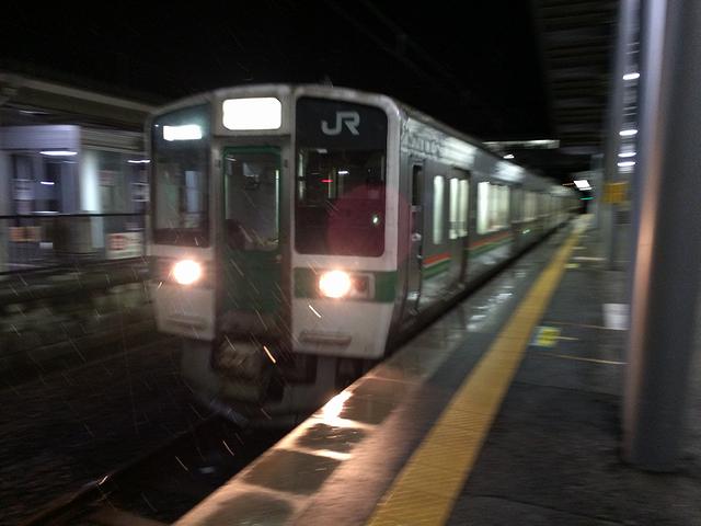 赤湯でこの旅最後のラーメンをいただけば、あとは、米沢、福島で乗り換え、黒磯からは最終列車となる普通列車で帰るのみ。赤湯で降っていたみぞれは板谷峠で雪になり、峠を下りて福島市内に入ると雨になりました。