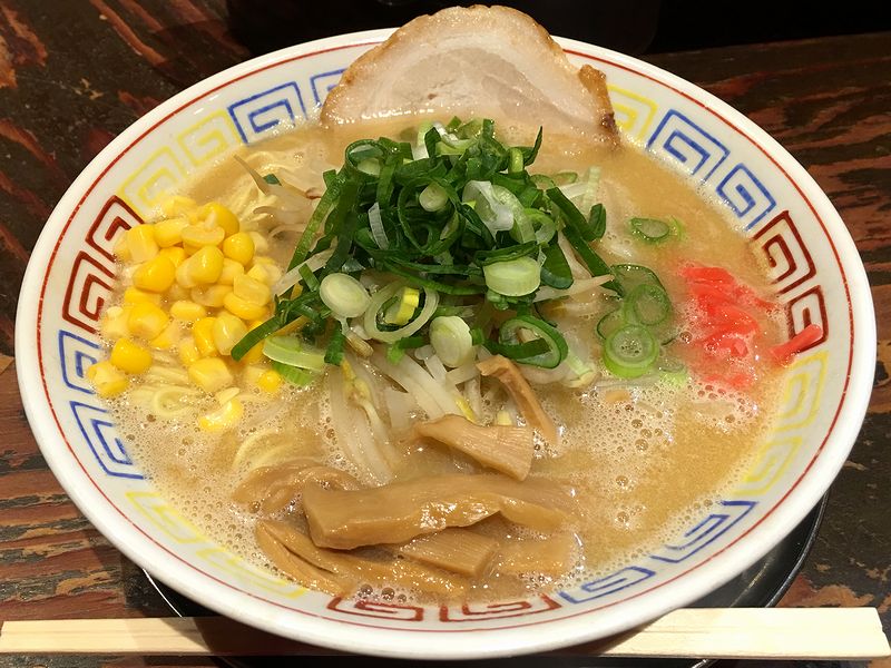 そんな中いただいたのが、こちらの品。お店一押しのノーマルな(醤油味の)中華そばと迷ったのですが、和歌山ラーメンを売りにするお店の味噌ラーメンがどんなものか気になったので、いただいてみることに。それで早速スープからいただけば、最初は豚骨の若干ワイルドな風味がぶわっと感じるものの、程なくして白味噌ベースのこっくり濃厚な、やや甘味のある味わいが口の中に広がり、これがなかなか。また、そこに合わせるのは、九州ラーメンっぽいゴワシコっとした食感の細麺というのが面白いです。そして具は、ホロトロ系の@状のチャーシューに、コーンとメンマは結構たっぷりと。あと、デフォルトで添えられた紅ショウガがことのほか合っていました。