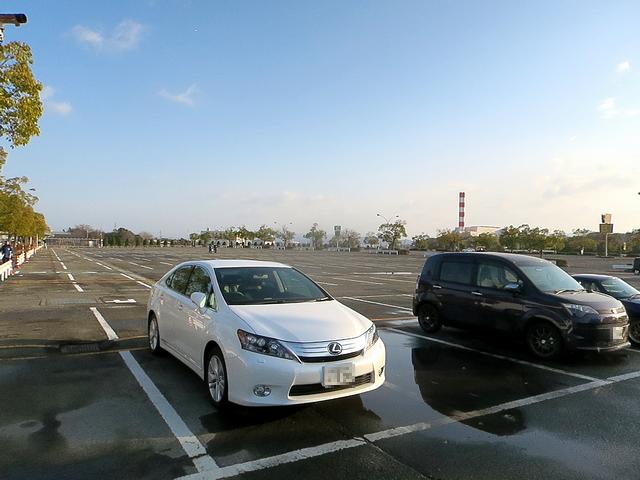 それで京都東ICから10分少々。午前7時50分過ぎに、京都競馬場の駐車場に到着。ちなみにこの駐車場、キャパ8000台とやたら広く(以前、某夢の国の駐車場並みだと聞いたことが。)、警備員さんに「帰りは京滋バイパスに出たいんですが、どのあたりに停めれば良いか」と訪ね駐車場所を決定。駐車場の出方まで教えていただいたのですが、スタンドに近いほうに停めればオッケーなんですね。
