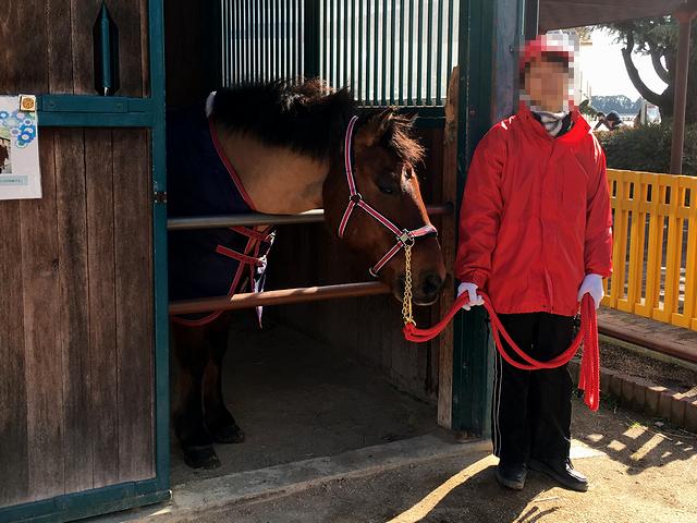最終コーナー方向のスタンドが終わったあたりには、ホースリンクなど馬とのふれあいイベントが行われるスペースがありました。で、そこにある厩舎は希少な在来馬である木曽馬の岳富(タケトミ)号がいて記念撮影も出来たのですが、軽く行列が出来ていましたね。