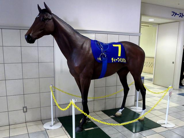 ビッグスワン1階には、ディープインパクトの馬像が。馬番号7は菊花賞の時の馬番ですね。(まぁ、番号云々言わなくても京都競馬場ですし…。)で、この菊花賞仕様のディープインパクト像は、イベントがあるごとに日本各地を転々としているそうです。
