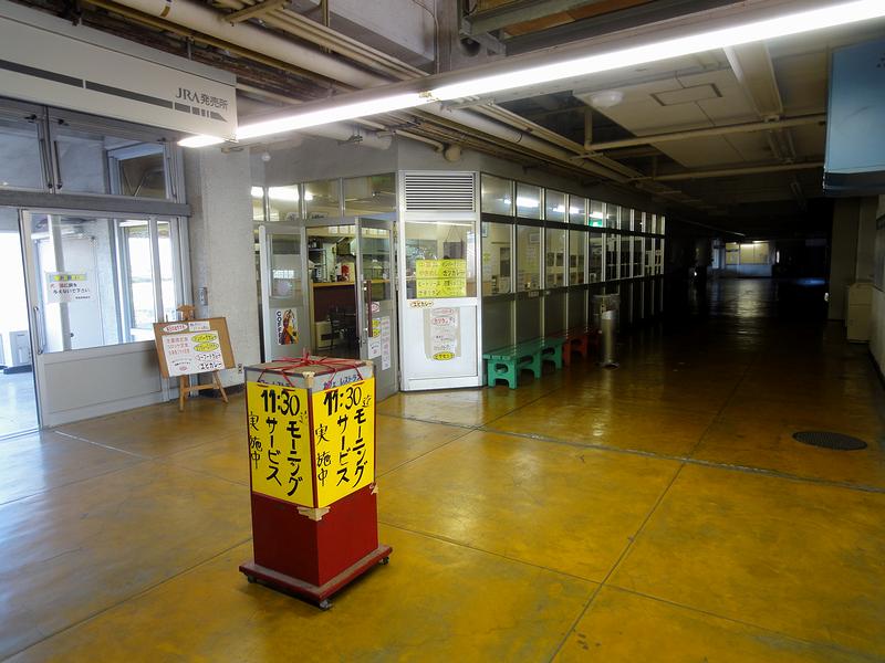 飲食売店は喫茶店的な感じでしょうか?お伺いしなかったことを後になって悔やむという。で、この奥はJRAの発売所となっているようなのですが、本日は平日だからか真っ暗でした。