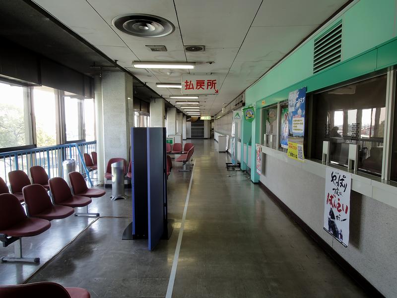 荒尾競馬場のスタンドには、南北に分かれた発売・払戻窓口があるのですが、2階と後述する3階のスタンド北側の発売所は閉鎖され。