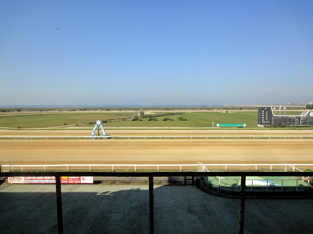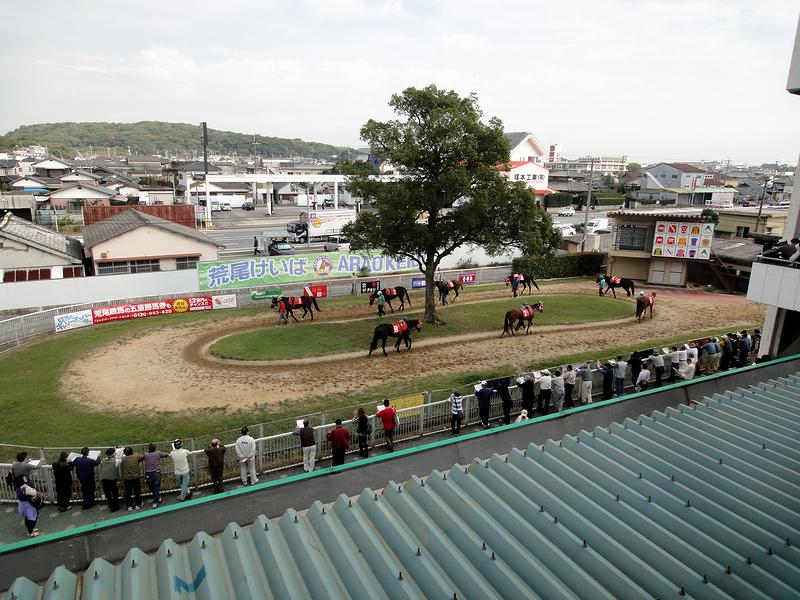 スタンド1階2階のコース側は、これぞ競馬場のスタンドという感じの屋外観覧席。で、馬場の向こうには有明海が広がるのですが、それにしても、潮風浴びながら観戦できる競馬場なんて、他になかったんですがね。