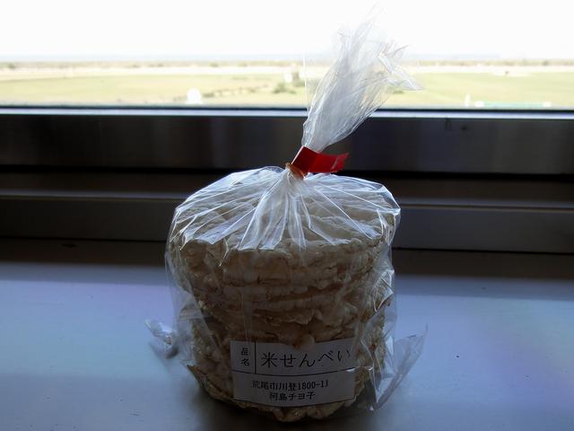 今回は主に、特別観覧席で観戦したのですが、受付というか入口はスタンド中央の階段の所に。また、そこでは先着順?で米菓子(軽トラ市で売っていた物)がいただけました。素朴な味で美味しかったです。