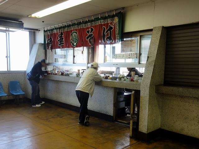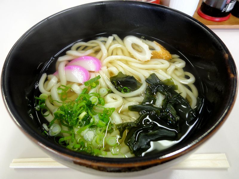 それで何をいただくかなのですが、軽いものと言うことで、4種類あった(ちなみに他には、玉子、肉、そして焼き。)うどんの中から名前に惹かれて一番安かったこちらを注文してみることに。で、登場したその具うどんですが、「具」と言っても特別変わった物が載っているという訳ではなく、写真のとおりネギ、ワカメ、竹輪、カマボコという一般的な具材が、当地で多い薄口醤油などで味付けしたあっさりとしたつゆのうどんの上に載っていました。ちなみにお味のほうは、何とも家庭的というか。