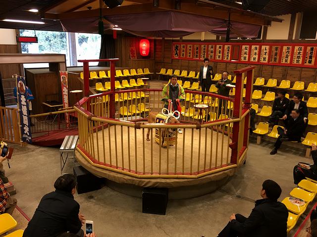 桂浜では大変広い有料駐車場にクルマを停めた後、まずは坂本龍馬像に。水曜どうでしょうファンとしては、つい後ろ姿を写真に収めてしまいます。(っていうか、後ろ姿の写真撮ってるやつは間違いなくどうでしょうファンでしょう。)その後、桂浜を眺め、更にその後桂浜水族館と思っていたのですが、同行者のリクエストによって、急遽とさいぬパークという施設へ。土佐犬と言えば闘犬(その昔は「犬の食い合い」と言ったとのこと。)ですが、一日数回開催される闘犬の横綱土俵入りというイベントを、タイミングよく見ることが出来ました。(もっとも、横綱自体は、軽トラの荷台に檻ごと乗せられこの施設に入っていくところを、偶然見てしまっていたのですが…。)それにしても、失礼ながら昭和テイストあふれる観光施設で、そういった意味でも堪能させていただきました。