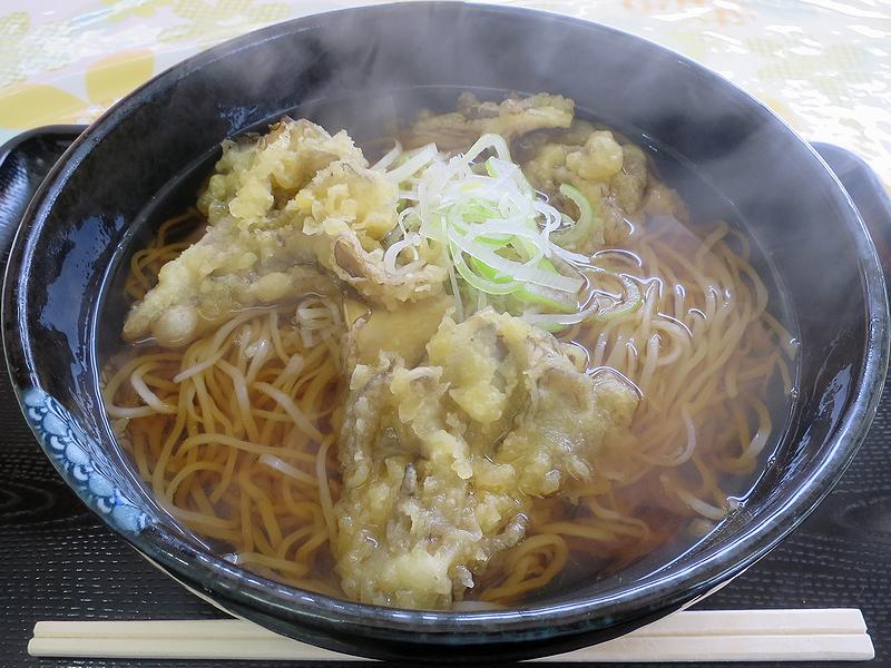 それでいただいたのが、舞茸の天ぷらが入ったこちら。で、何といっても細めのソバが、歯ごたえ、そして味や香りもちゃんとしているというか、さすがに打ち立てではないと思いますが、それでも十分すぎる旨さというか。それに比べると、塩気はしっかりしていて出汁感そこそこのつゆや、サイズ的に立派で多分揚げたてだとは思うのですがそれ故若干オイリーに感じた舞茸の天ぷらが普通に感じてしまうのは、贅沢な悩みというやつでしょうか。(どちらも、十分旨いんですがね。)