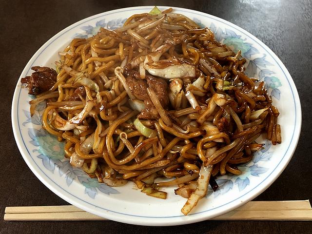こちらは、同行しやがいただいたもの。令によって少々味見させてもらったのですが、ソースが照り輝く見た目どおり、濃い目の味がバシっと決まっていて、ご飯が欲しくなる味。ちなみにこちらのお店の麺類は、単品の値段にプラス200円することによって、サラダ、お新香、冷や奴、半ライス(焼きそばの場合はスープも)が付く「定食」にすることが出来るのですが、この焼きそばは、定食にした方が満足度高いですね。