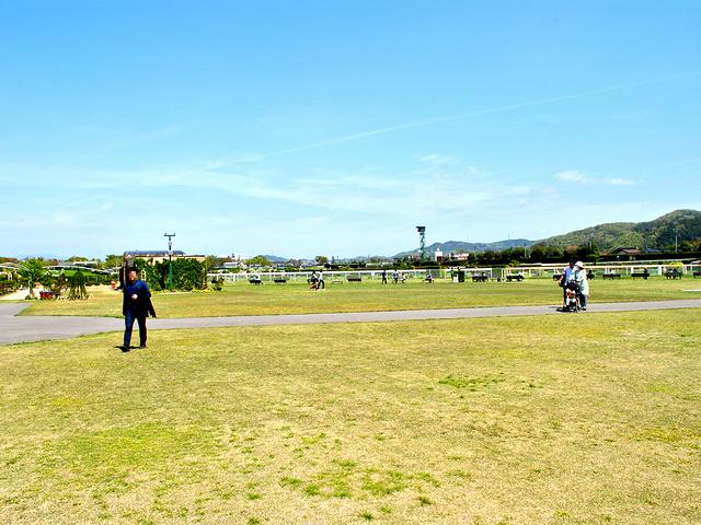 前の記事でも書いたとおり、福島競馬場はJRAの競馬場の中では敷地がとても狭いのですが、そのためか馬場内広場がパブリックスペースとして整備されています。