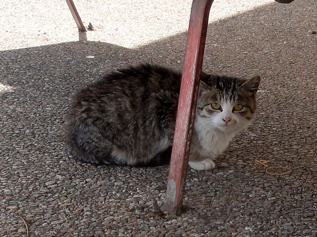 場内のベンチの下には、猫さんもいらっしゃいました。