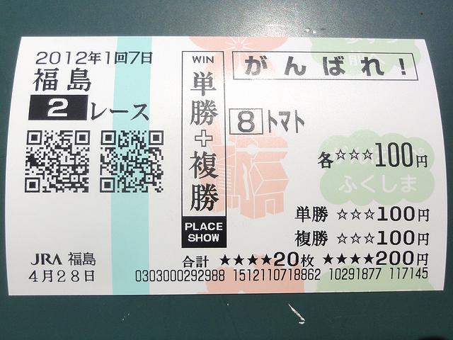 というわけで、個人的には久しぶりで、あの震災から見事復旧を遂げた福島競馬場だったのですが、福島の街に競馬が戻ってきたことが素直に嬉しく、個人的にもここでまた競馬に興じることができると思うと、本当に有り難いです。我が家から一番近いJRAの競馬場にもかかわらず、震災前は忙しさにかまけてあまりマメには来られなかったのですが、今後はできる限りここに来て、楽しみたいと思いますので。