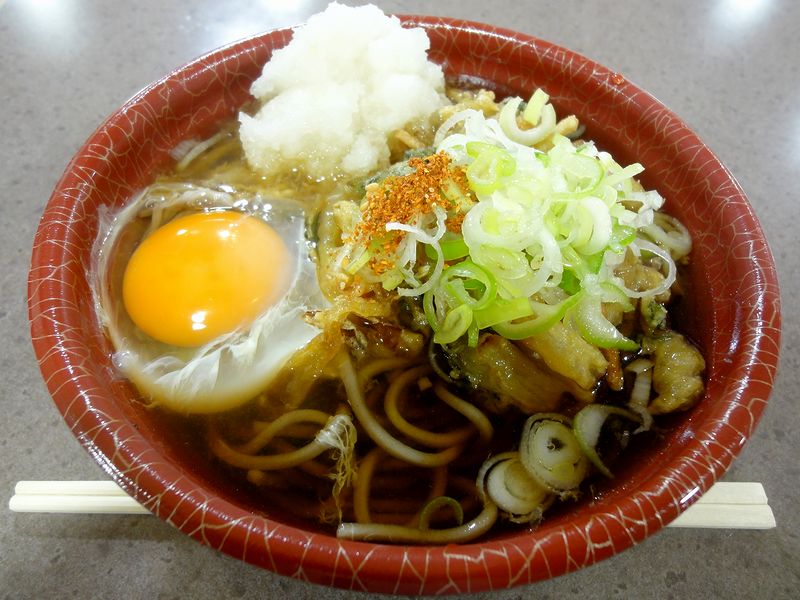 【かきあげ(そば) 410円 + 生卵 50円】