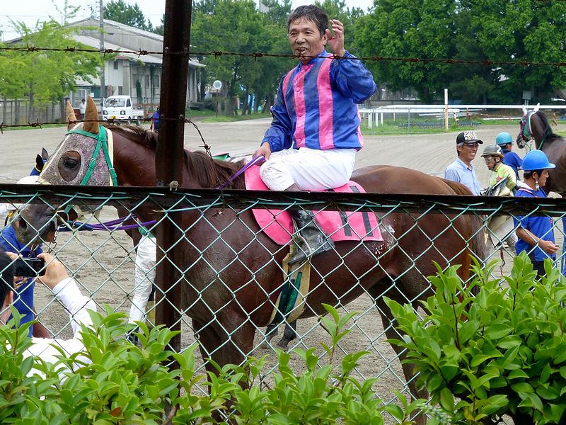 山中騎手は、大阪の春木競馬場でデビューしたのですが、春木競馬場の廃止に伴い大井競馬場へ移籍。その後、名古屋競馬場、紀三井寺競馬場を経て、昭和55年(1980年)からは金沢競馬場で騎乗している日本国内で最高齢(62歳)の現役騎手で、かつてリーディングに輝いたことも有あり、また今年5月6日には地方競馬騎手史上最年長勝利記録(平地競走)を達成されました。
