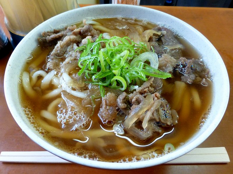 つゆは、上品なだしの香りが良く、味加減も丁度良く。そこに具の肉の甘みと、動物系の風味が加わって、パンチが効いているというか。手打ちらしい細めのうどんは、若干柔らかめながコシはある、個人的には何とも好みな食感。そして上に載った具の肉は、牛肉とタマネギを甘辛く煮た物で、結構「肉」を主張するというか。お陰で(味的な)食べ応えもありますね。
