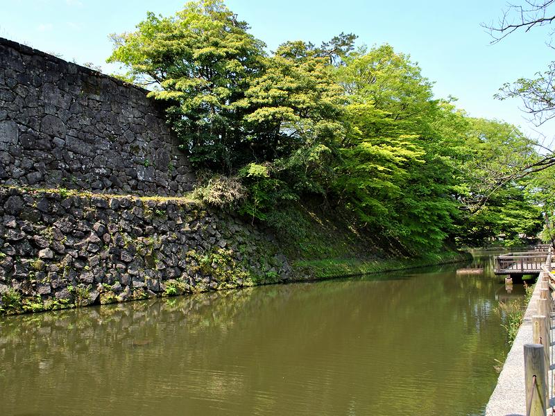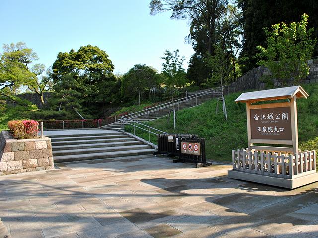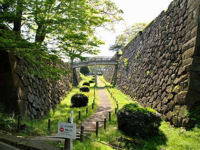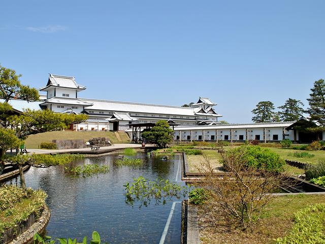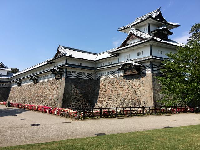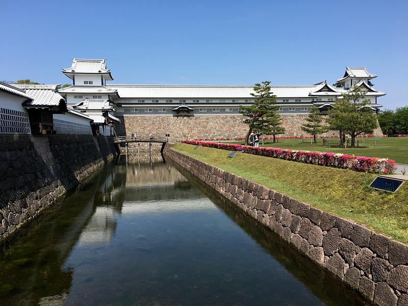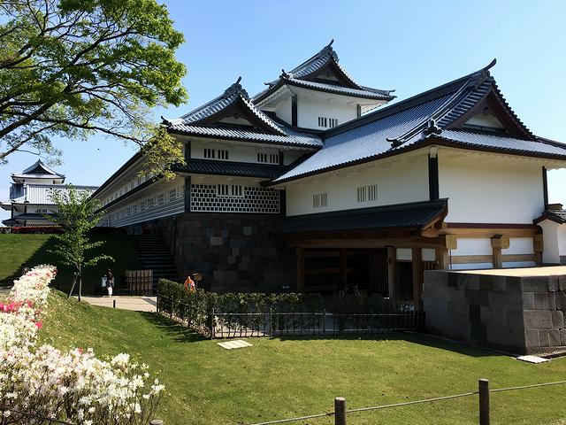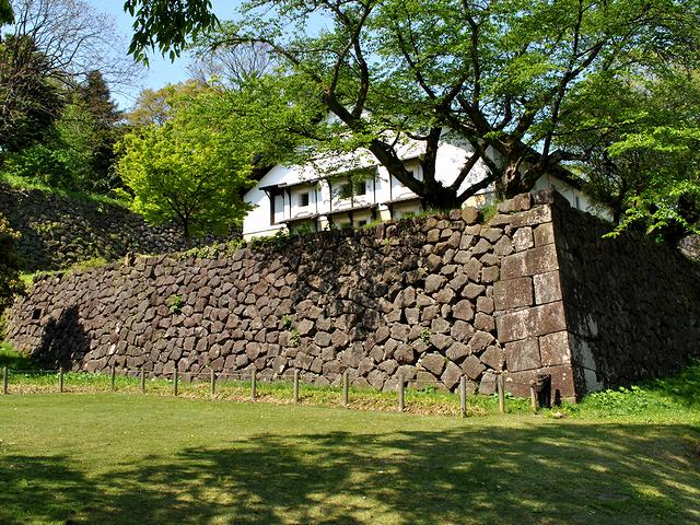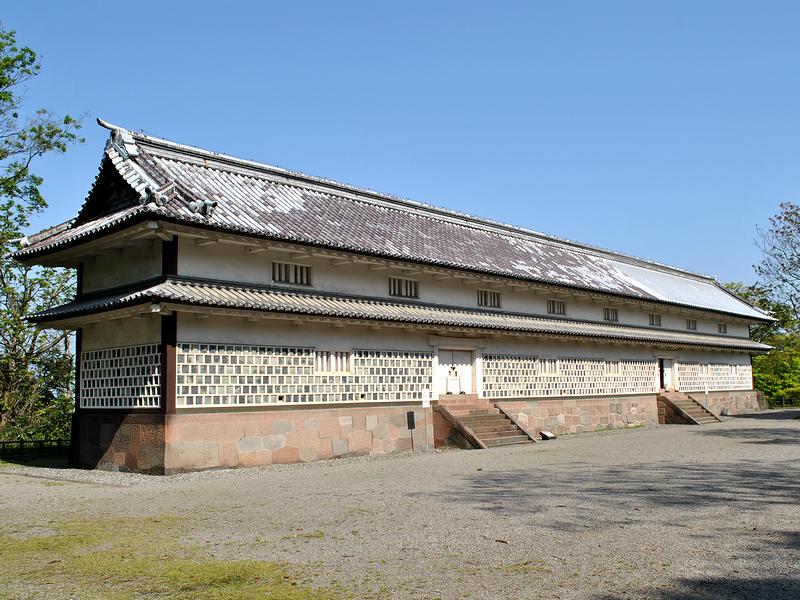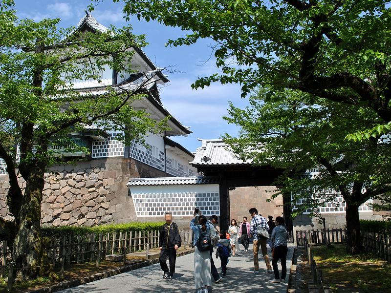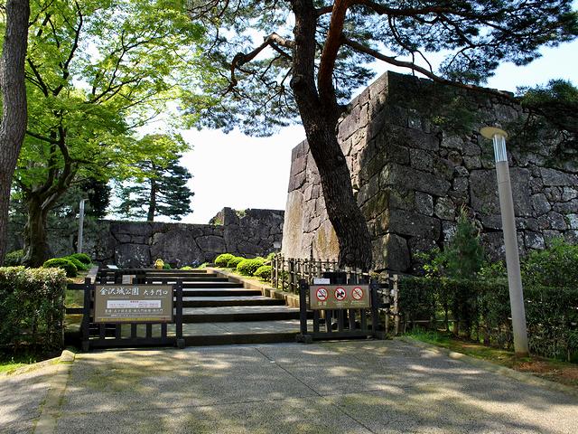 やがて明治に入ると、全国城郭存廃ノ処分並兵営地等撰定方により存城処分となり陸軍駐屯地となったのですが、1881年(明治14年)に発生した火災で、石川門と三十間長屋と鶴丸倉庫を残して建物は焼失。太平洋戦争後は、新設された金沢大学の敷地として使われましたが、平成7年に大学は移転。その後、城跡を国から取得した県が金沢城址公園として整備を開始し、平成13年(2001年)には菱櫓、橋爪門、橋爪門続櫓、五十間長屋が復元完了。その後も既存の建物の修復や堀の復原整備などが行われています。
