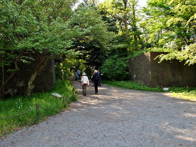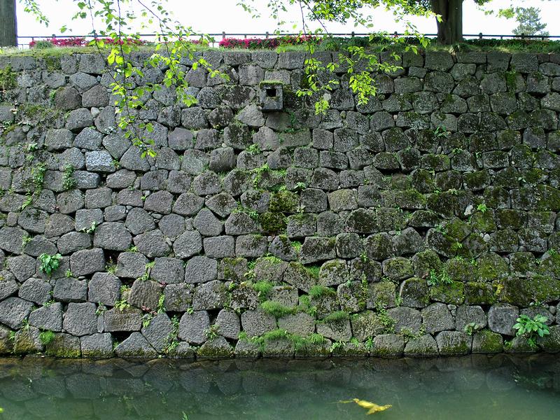 三の丸の外周部をちょっと戻って、東の丸北面石垣を鑑賞。ここには前田利家公の時代の古い野面積みの石垣が残っています。