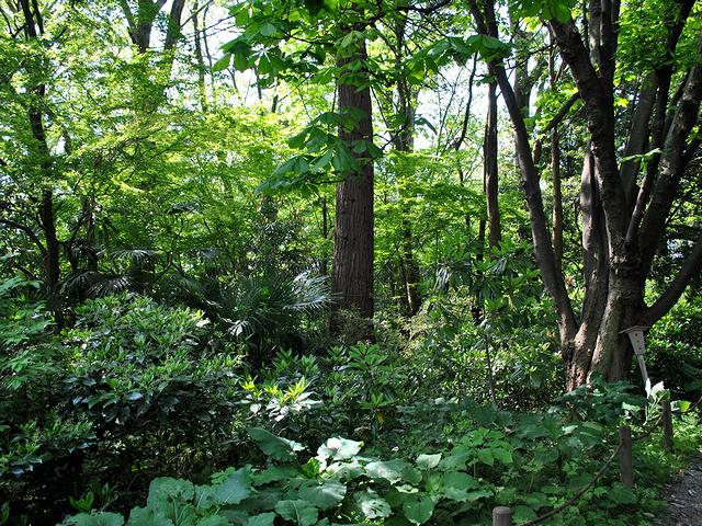 本丸と東の丸は、戌亥櫓跡や通路など一部を除いて鬱蒼とした森林状態。