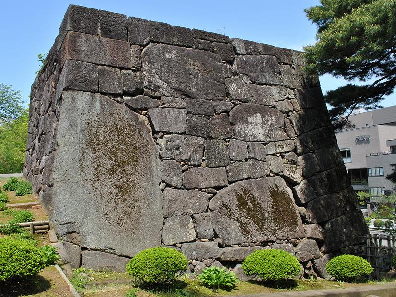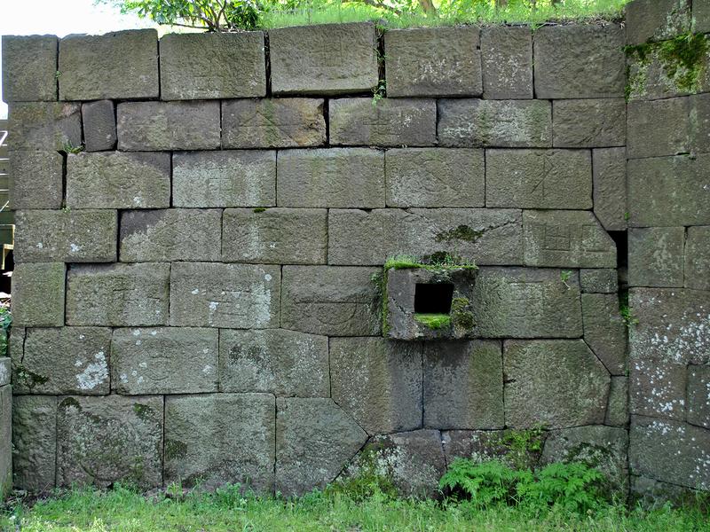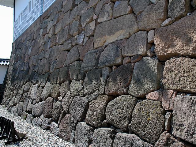 第六旅団司令部脇にあるのが、かつての藩主側室の屋敷(数寄屋屋敷)の石垣で、きちっと長方形に揃えられた切り込みハギが見事なのですが、ここの石にも刻印がされまくりでした。