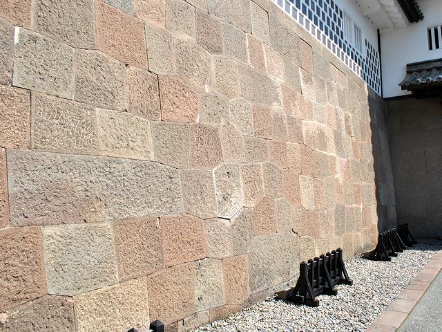 三の丸からの出入口になっているのが、国重文パート3の石川門。こちらも現存建築物なのですが、注目すべきは石垣。門の左右で打ち込みハギと切り込みハギという違う積み方をされているのが大変珍しいです。