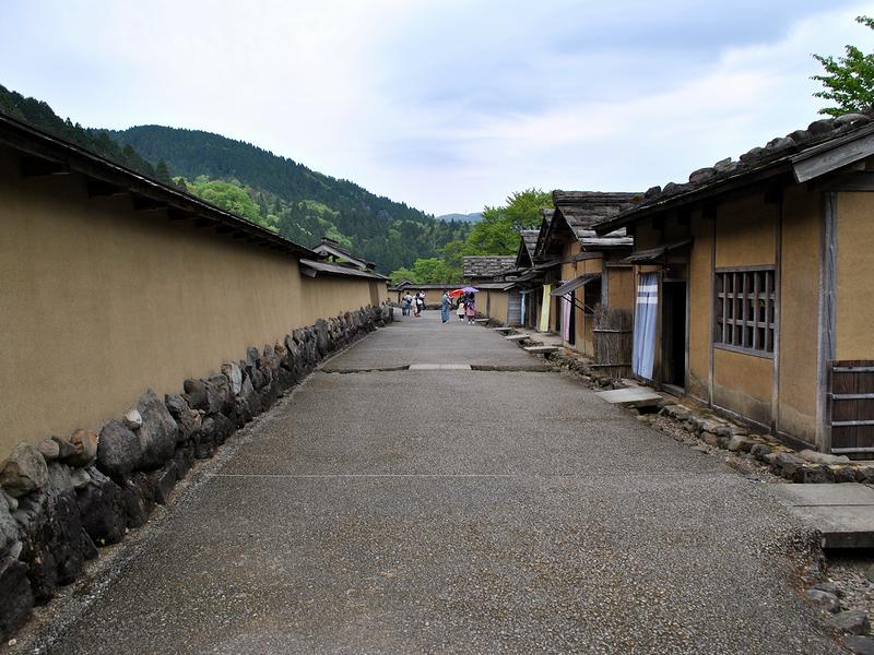 で、復元町並みですが、これがジオラマというか箱庭好きな自分的に、とても興味深く面白かったというか。山側に大きな武家屋敷跡の土壁、そして反対側は商家や小さめの武家屋敷などが建ち並んでいる様は、何とも見事ですし、また経年によって良い感じでウェザリングされてきているというか。最近は、城下の建物まで復元されたりしているお城も増えてきたような印象があるのですが、ここまでの規模で復元されているというのは、なかなかないんじゃないでしょうか。