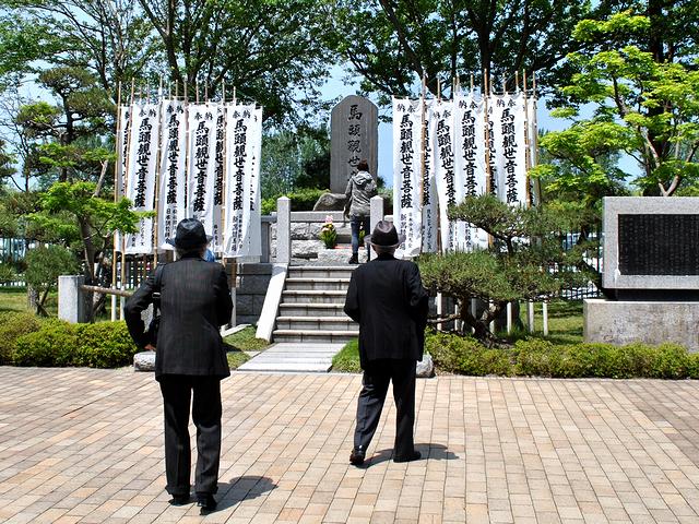 新潟競馬場の馬頭観音は、パドックの横に。なのでこれから愛馬を出走させるオーナーさんが、パドックへと向かう直前にお参りされてたりします。
