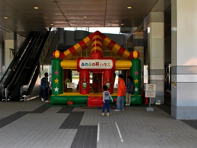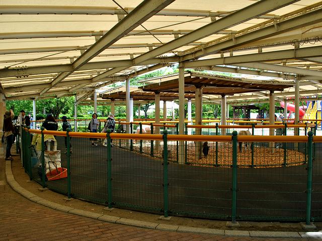 ポニーリンクのお隣がこども広場。事案発生にならぬよう遠目から。また、ミニ新幹線や、右手スタンド側にはふわふわハウスなどなど、最近の競馬場らしくお子様が遊ぶところも豊富。