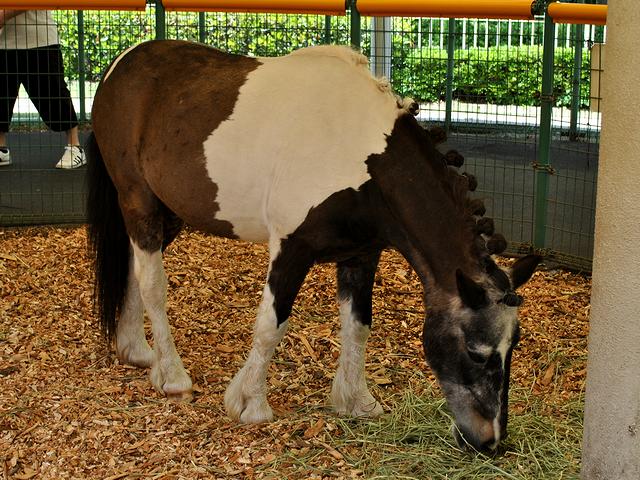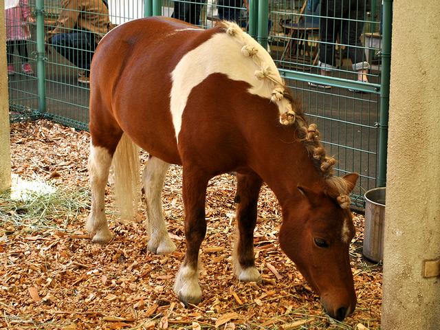 パドックを抜けた左手方向にあるのが、ポニーとふれあえるポニーリンク。お出迎えしていた2頭を含めた4頭のポニーがいらっしゃいました。