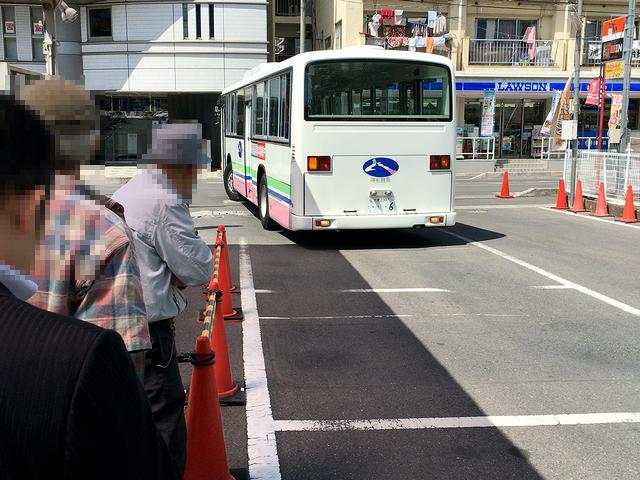 【乗り場にバックで入ってくるバス】