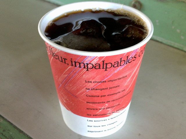 で、いただいたのはアイスコーヒー。こういう所なので、既製品を小さめの紙コップに注ぐだけなのですが、それはそれで悪くないかと。