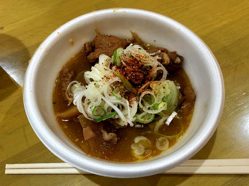 それでいただいたのが、こちらの品。東京競馬場グルメグランプリ2015第3位に選ばれた品だそうで。で、味噌ベースのアッサリとした味付けに、豚モツはトロトロの口当たり。根菜類も良く味が染みています。そしてたっぷりの白ネギが嬉しいですね。なんていうか、東京の煮込みという感じで、間違いないですね。