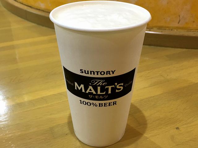 生ビールは小(410円)と大の2サイズ。銘柄はもちろん、ザ・モルツ。それと、ビールとは関係ないのですが、店員さんは年齢層の幅広いお姉さんばかりで、皆さんとても元気と愛想が良かったですね。