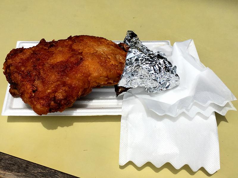 それでいただいたのは、こちらの品。ちなみにこちらとフライドポテトのセットは500円で、そのセットが東京競馬場グルメグランプリ2015では第8位にランクインしていました。で、お味のほうは、香ばしくカリカリの衣にしっかり味が付いているタイプで、中はとってもジューシー。タイミング良く揚げたてをいただけたのですが、これはビールやサワーがいくらでも進んでしまうやつですね。