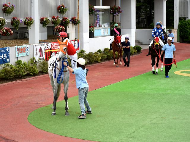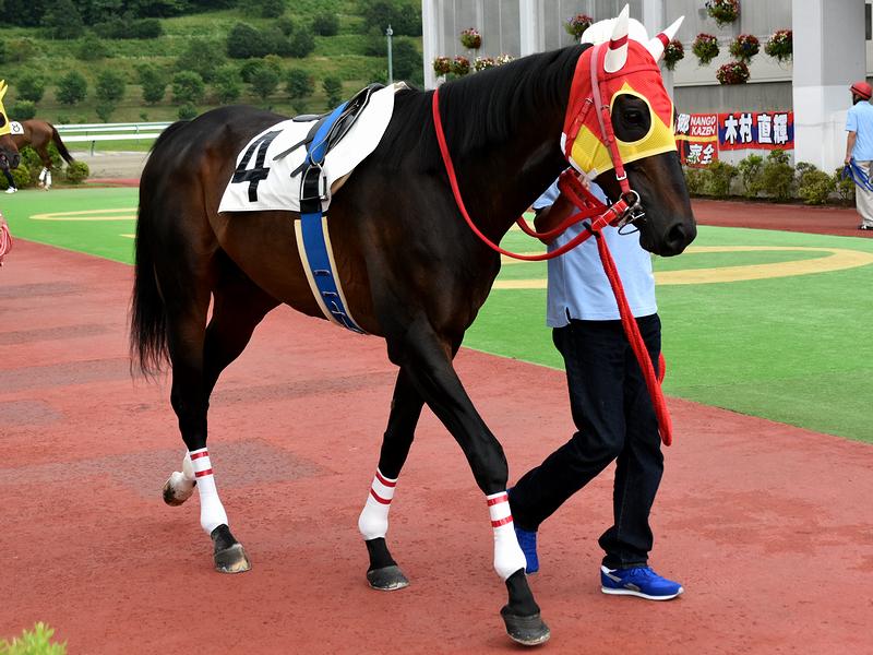 こちらは第4レースのパドックを周回する、国内で現役のサンデーサイレンス産駒2頭のうちの1頭であるビュレットライナー号。サンデーサイレンス号といえば日本の競馬を一変させた大種牡馬で、ディープインパクト号など平成14年(2002年)に亡くなるまでに数々の名馬を輩出しましたが、その直子がまだ現役なんです。で、ただ走っているのではなく、前走でも勝利を収めたようにまだまだ現役バリバリ。出来るだけ元気で頑張っていただきたいですね。
