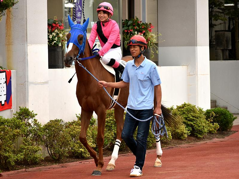 【第4レースのパドックを周回する鈴木麻優騎手】