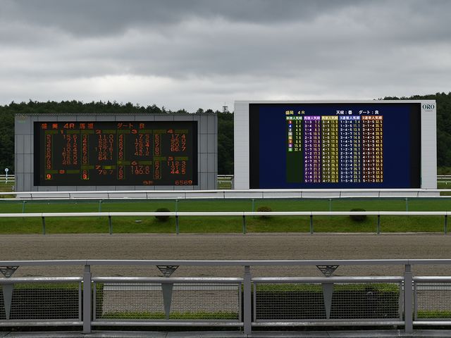 ホームストレートにはどちらも立派なオッズ表示機(左)と大型映像装置(右)が並びます。