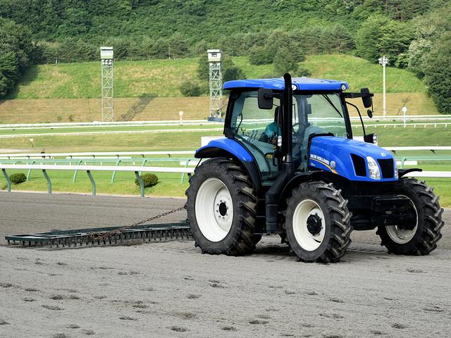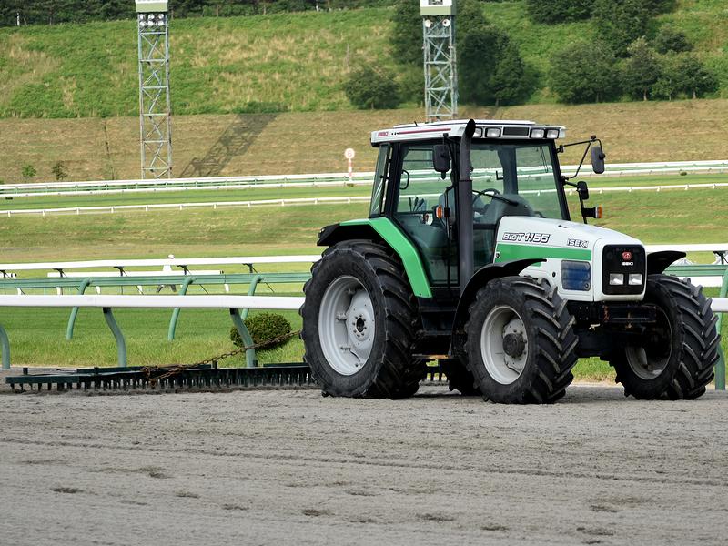 個人的に何故か気になる、ハロー掛け用の車両ですが、なんと前回見かけたクボタのトラクターを見かけなくなり、替わりに初めて見るマッセイ・ファーガソンや地方競馬ではお馴染みのニューホランドのトラクターになっていました。あとヰセキのもよく見ると型が新しくなっているような。