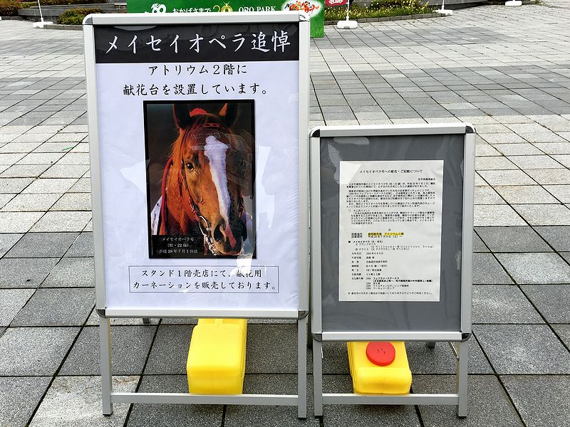 ですが福島競馬場からの帰り際、相方から「このまま盛岡に行くがよい。」(って、こんな口調ではありませんが。)とのお言葉が。実は昨晩、さる7月1日に亡くなってしまった岩手競馬を代表する名馬で個人的にも大変思い入れがあるメイセイオペラ号の献花台がこの週末から盛岡競馬場に設置されるので、それがあるうちに献花をしたいと言ったことを相方は覚えていたらしく、「どうせまた改めて行くのなら、このまま行っちゃいなYO!」(って、こんな口調じゃありませんが。)と。今回は敗戦のショックの大きさに気持ち的にすっかり諦めて、最初はそう言われても「いいよ…。」と福島西IC経由で帰るルートを相方に指示していたのですが、ここで自分の中でのやる気スイッチが入ってしまったらしく、途中のコンビニにクルマを入れて貰い、急遽宿が空いてるか調査。ここで高い宿しか空いてないようなら諦めるつもりだったのですが、幸いなことに福島からだと盛岡の手前となる北上市というところに比較的リーズナブルな宿を発見したので、そのまま行ってしまうこうとにしました!!