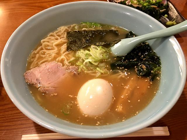 こちらは、同行者がいただいたもの。例によって味見させて貰ったのですが、「あっさり」とは通常のラーメンから背脂を抜いた物でしょうか?豚骨だけど口当たり凄く軽いスープに、味付けは醤油味。あと、味玉は黄身がほぼ液状のトロトロでした。