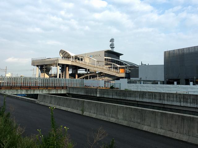 荒子川公園駅を発車すると短い斜張橋で荒子川を渡り、それを過ぎると車窓は工場が目立ってくるのですが、その工場も、稲永駅、野跡駅と進むうちに町工場からだんだんと規模の大きな物に変わってくるような。またそれと同時に、その間に建つ集合住宅も、築年数が新しげなタワーマンションが目立ちますね。あと、稲永駅と野跡駅の間には、あおなみ線の車両基地である潮凪車庫が設置されていますが、ここでは日常の検査程度しか行われず、本格的なメンテナンスはJR東海に委託されているとのことで。