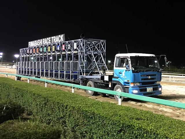 船橋の発馬機は、当然ながら南関発祥の宮道式。このトレーラーヘッドが牽引するのって、個人的にはメカメカしい感じがして好きだったりして。そして船橋競馬場のハローがけはウニモグを使用。以前お伺いした時は黄色い塗装の2台が活躍していたのですが、今回は1台が白いのでした。それにしても、何台あるのか個人的には凄く気になるんです。