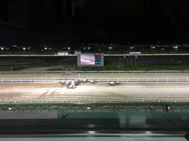 ゴール板まで300mと、地方競馬のコースの中ではかなりの長さを誇る最後の直線。夜になったからって長さが変わるわけではないのですが、長い間激しい攻防が続くのは相変わらず。