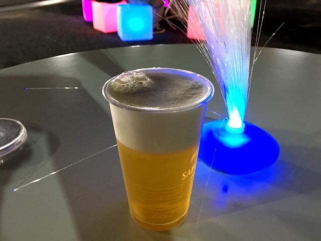 そして更に、この日は『ハートビールナイター』と称して、生ビール1杯購入ごとにスクラッチカードが貰え、その商品で更に1杯サービスでいただけました。で、その引換場所が、場内のアタリーナ近くでこの日まで行われていた「エレクトリック・ビアガーデン」。この日は涼しくて、ビアガーデンで飲むには少々厳しい気がしたのですが、終盤、軍資金が尽きかけていた時にいただいたこの1杯(当たりくじを取っておいた)は有り難かったです。