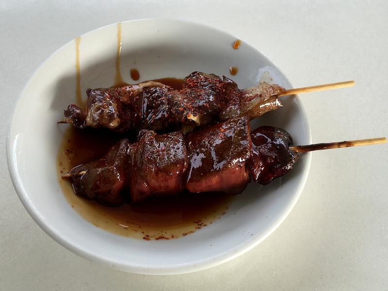 で、初めてお伺いして以来毎回いただいているこつらのもつ焼き。今回も好物の2品をいただきましたが、今回のは若干クセがあるように感じました。それでも、場所を考えれば十分なクオリティというか、普通に美味しかったんですがね。