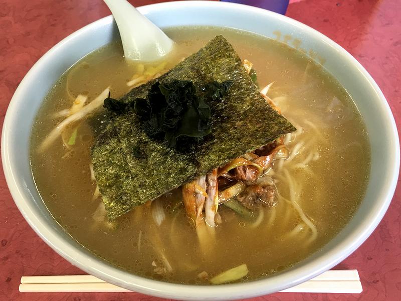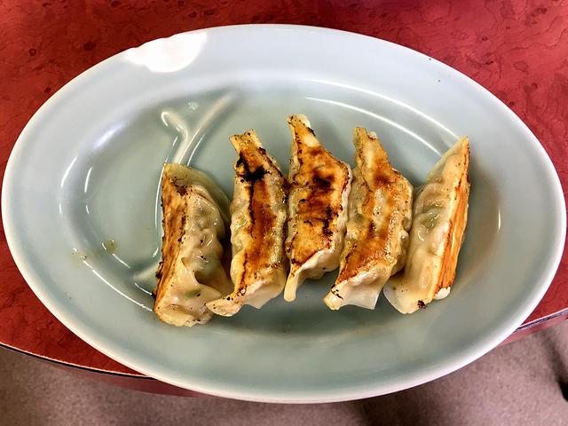 薄くて焼き目がサクパリっとした皮に野菜多めの餡といった「ラーメン屋さんの餃子 ザ・ベーシック」というべき味と食感は相変わらずなモノの、この日のは若干オイリーな仕上がりに感じました。ちなみにつけだれは、ニンニクと豆板醤をお酢で溶いた風邪っぴき仕様で。
