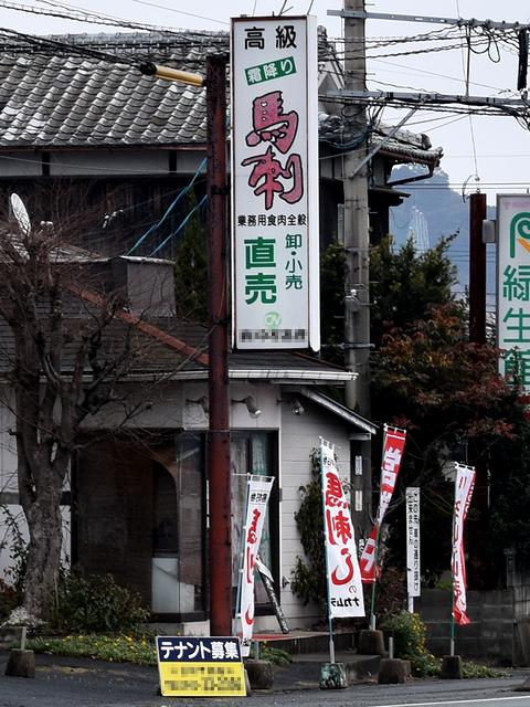 【競馬場入口付近にあった馬刺しの看板】