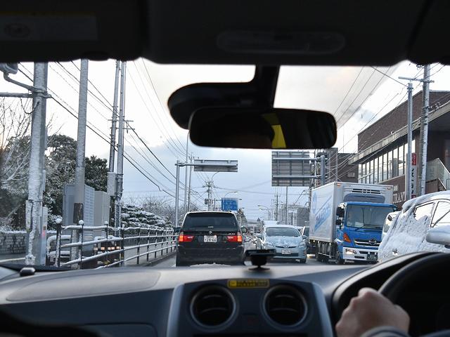 【沿道に雪の積もった福岡から太宰府へと抜ける道】