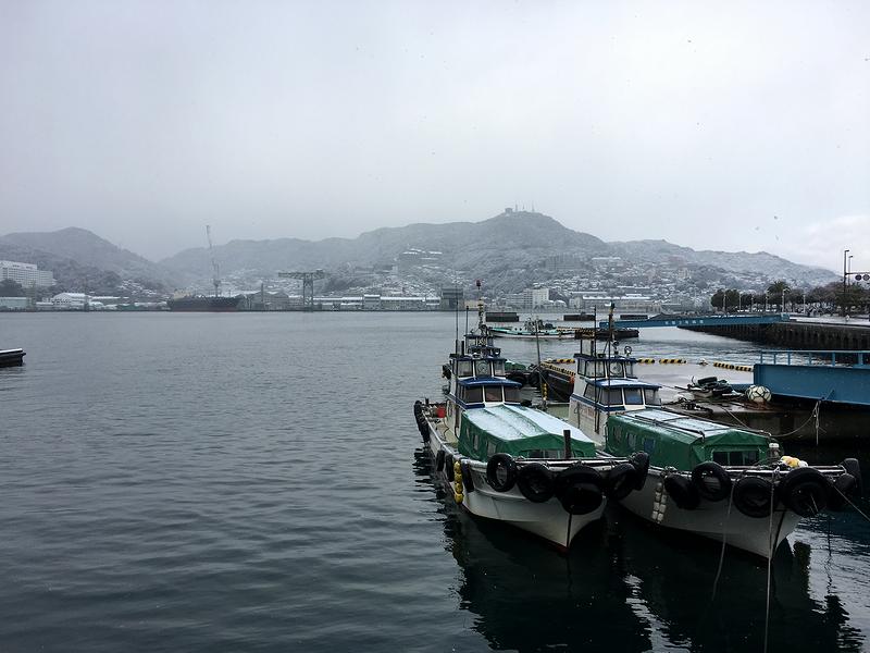 【雪の積もった長崎の港】